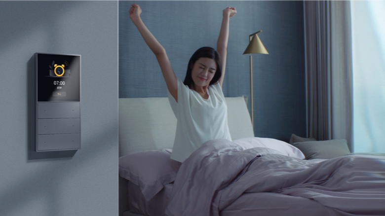 晨起窗帘定时自动打开,灯光亮起,温柔的叫醒服务, 开启元气满满新一天。